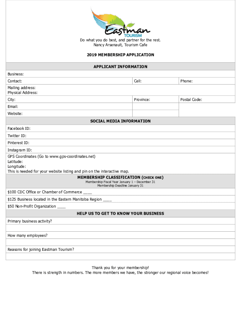 Individuals or organizations that wish to become members of a particular association or organization are required to file the PDF membership application form.