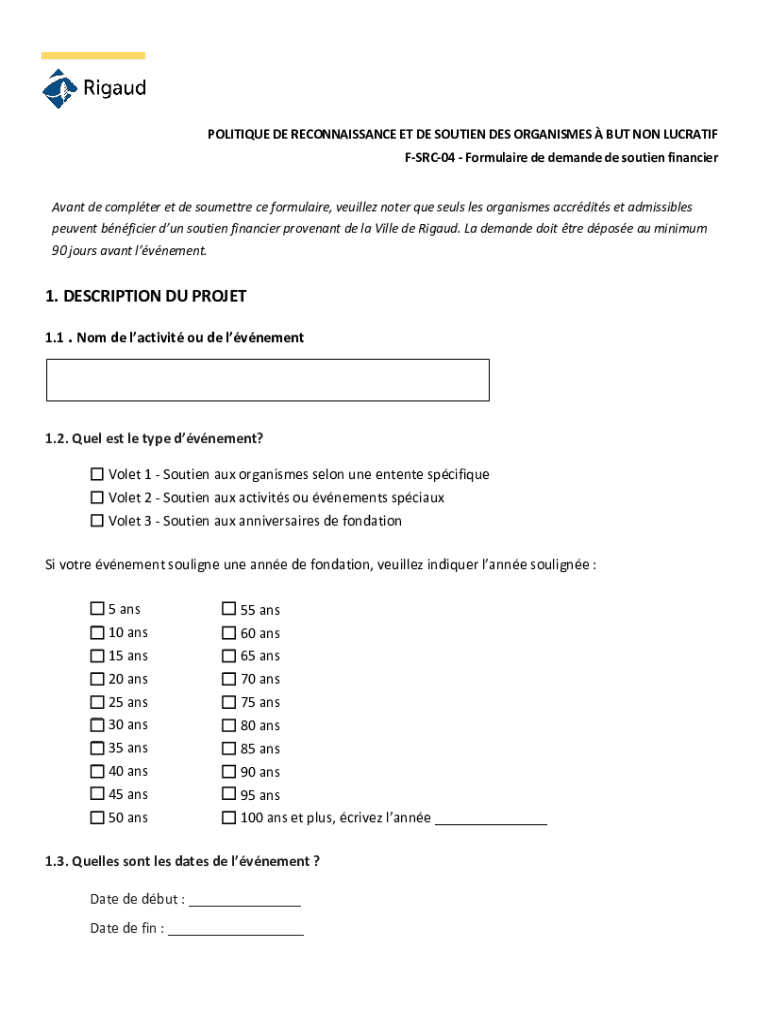 Obtenir le gratuit POLITIQUE DE RECONNAISSANCE ET DE SOUTIEN DES ORGANISMESBUT NON LUCRATIF F-SRC...