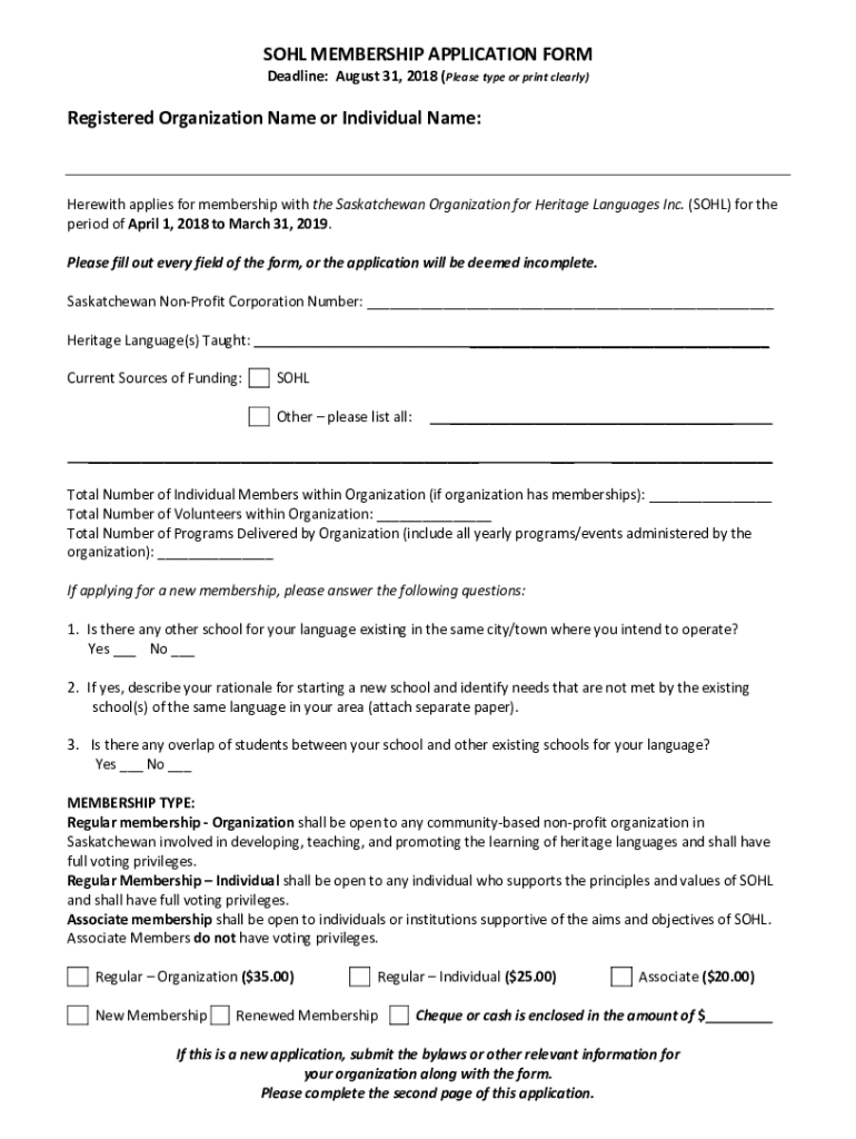 SOIL MEMBERSHIP APPLICATION FORM Deadline: August 31, 2018 (Please type or print clearly)Registered Organization Name or Individual Name:Herewith applies for membership with the Saskatchewan Organization