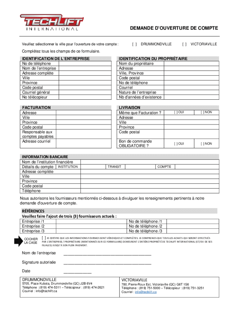 DEMANDED OUVERTURE DE COMPTEVeuillez electioneer la Villa pour Ouverture de vote compete : DRUMMONDVILLE VICTORIAVILLECompltez tousles champs de CE formula ire. IDENTIFICATION DE ENTERPRISE No de