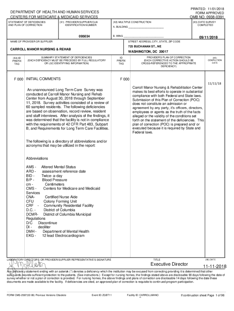 PRINTED: 11/01/2018 FORM APPROVEDDEPARTMENT OF HEALTH AND HUMAN SERVICES CENTERS FOR MEDICARE & MEDICAID SERVICES STATEMENT OF DEFICIENCIES AND PLAN OF CORRECTION(X1) PROVIDER/SUPPLIER/CIA IDENTIFICATION
