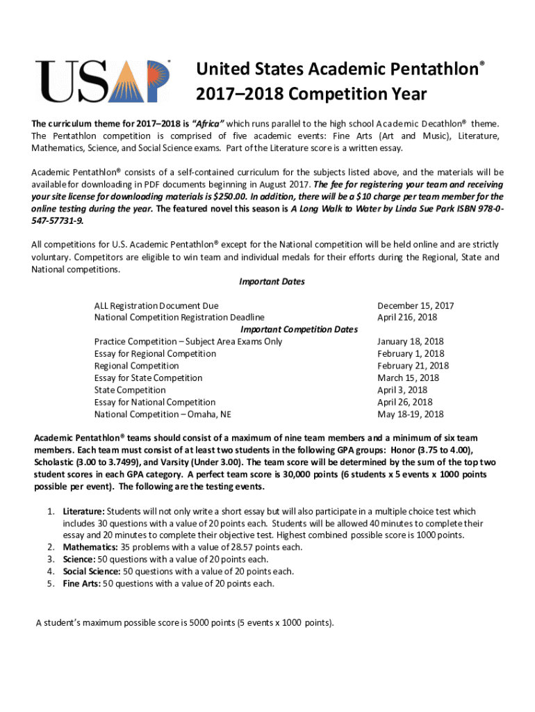 The curriculum theme for 20172018 is Africa which runs parallel to the high school Academic Decathlon theme.