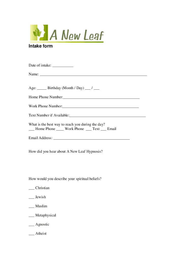 Please note that this is a general guide, and the specific requirements may vary depending on the organization or agency providing the intake form. It is important to carefully read and follow the instructions provided on the form itself.
