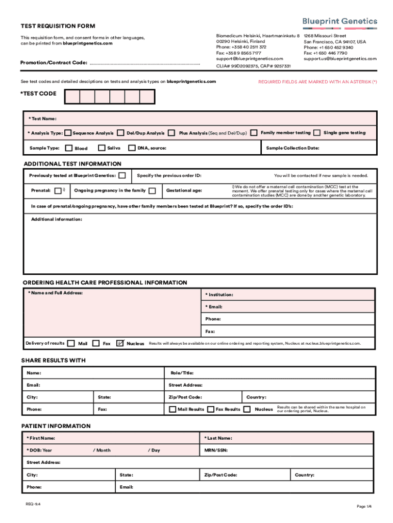 support@blueprintgenetics.comThis requisition form, and consent forms