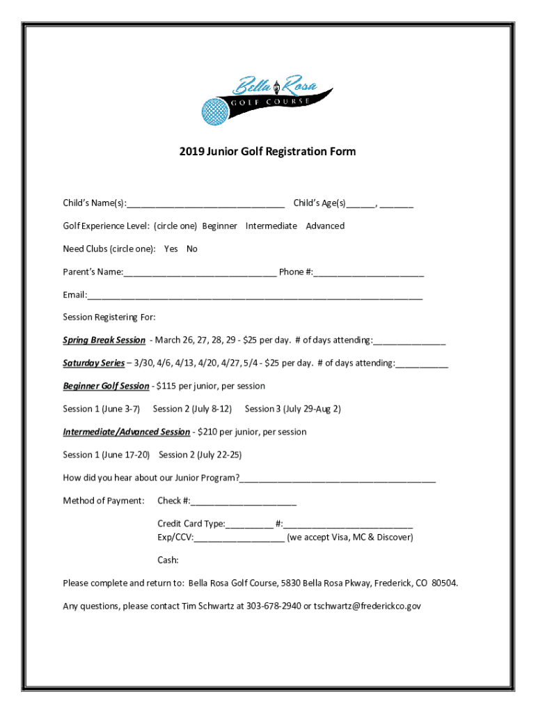 2019 Junior Golf Camp is not the form you're looking for?Search for another form here.