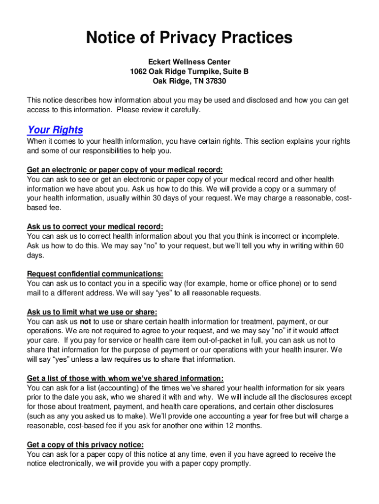 Get the free Notice of Privacy Practices - Chiropractor Oak Ridge TN