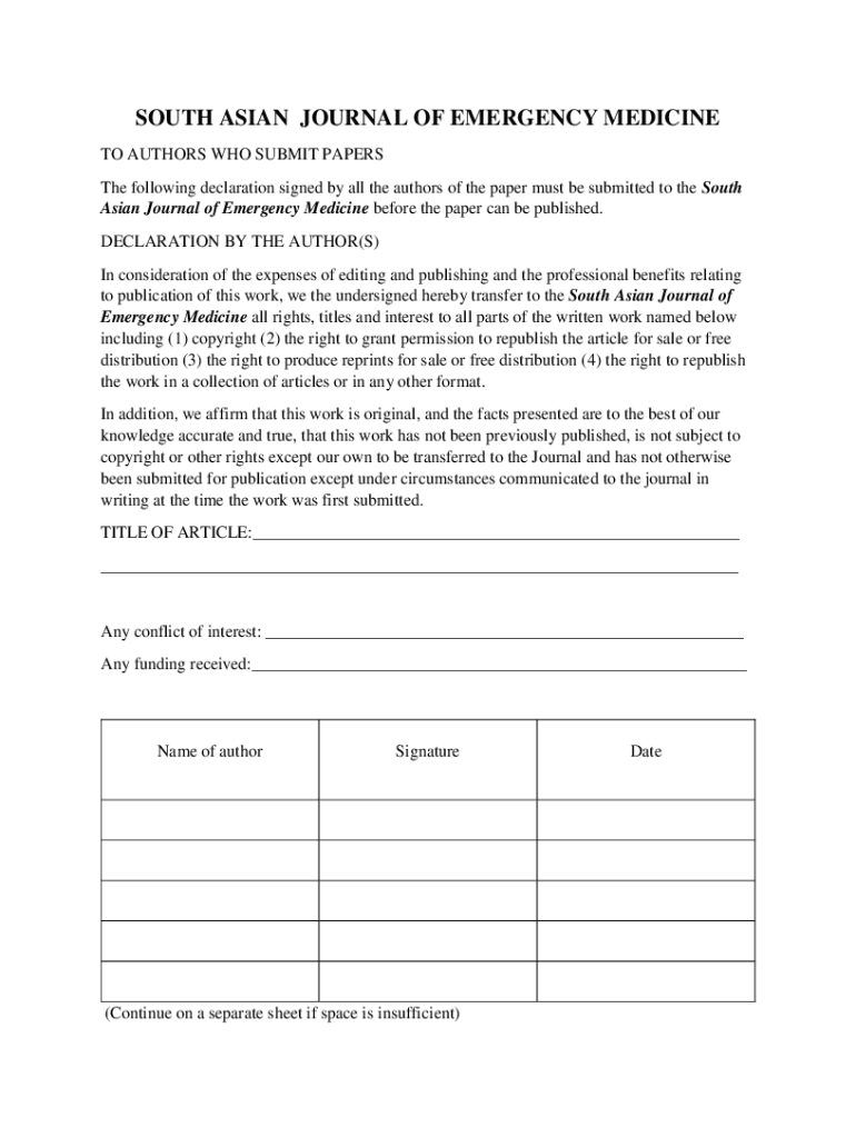 SOUTH ASIAN JOURNAL OF EMERGENCY MEDICINE