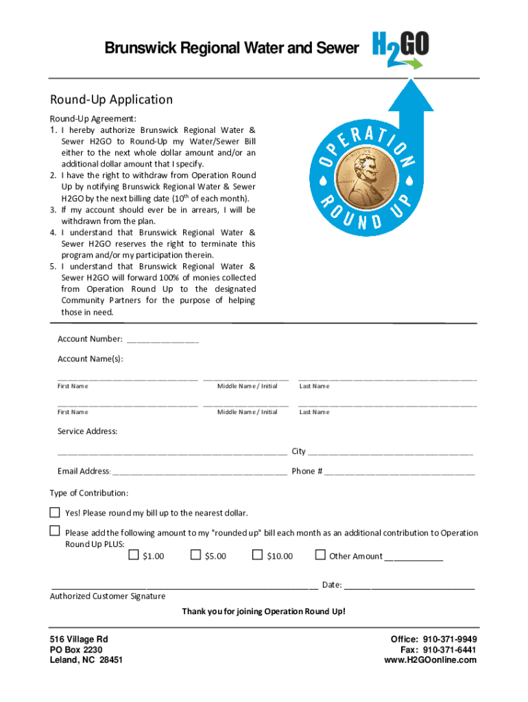 Brunswick Regional Water and Sewer Brunswick Regional Water & Sewer H2GO is pleased to announce an exciting new community improvement program: OPERATION ROUND UP When you join Operation Round Up,