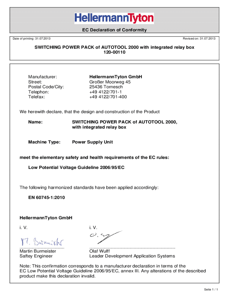 Date of printing: 31.07.2013Revised on: 31.07.2013SWITCHING POWER PACK of AUTONOMY 2000 with integrated relay box