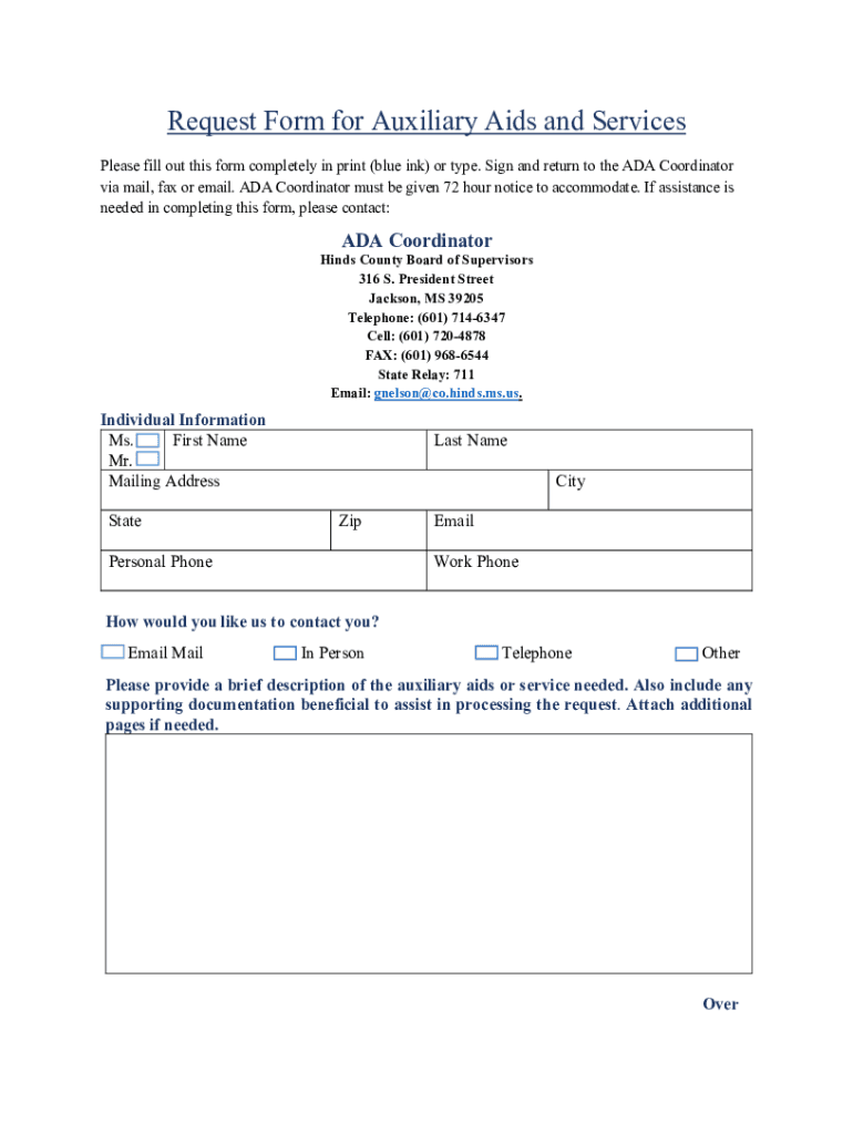 Get the free Request Form for Auxiliary Aids and Services