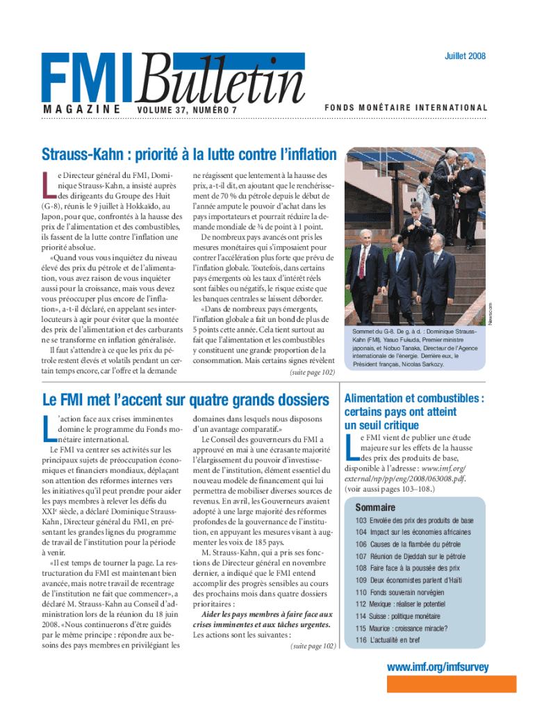 Obtenir le gratuit Bulletin du FMI, juillet 2008. L'inflation, Programme du FMI, Envole des prix ...