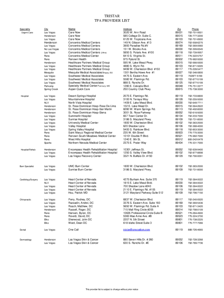 TPA PROVIDER Insurgent CareHendersonUrgent Carlos Vegas