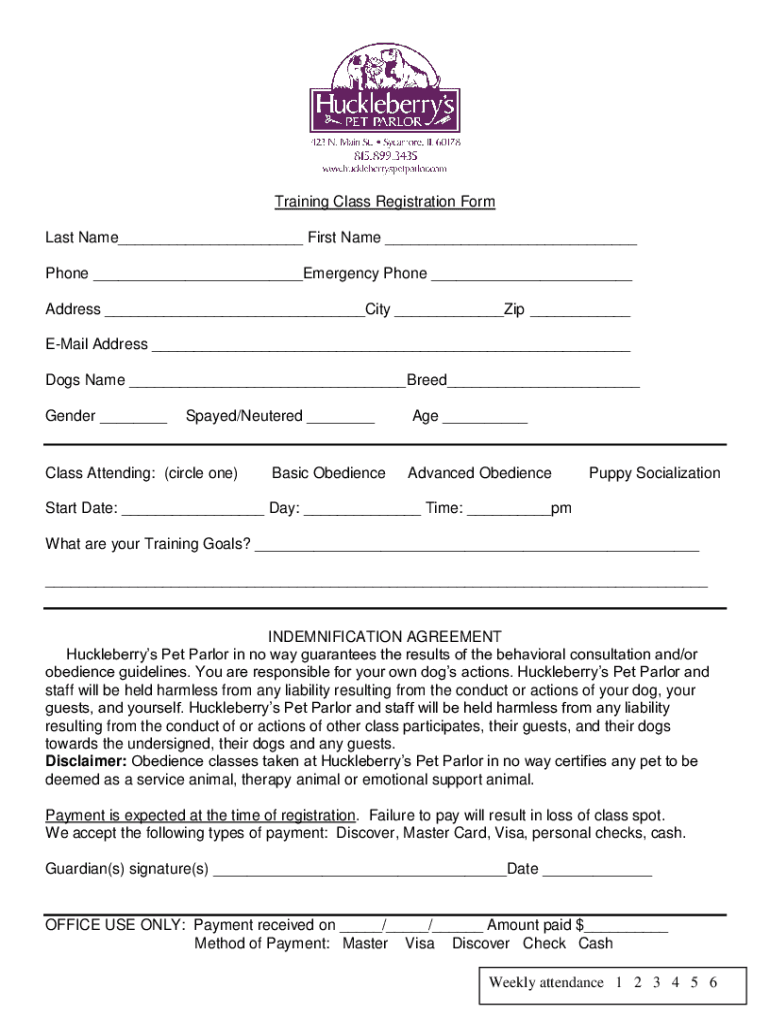 Training Class Registration Form Last Name First Name Phone Emergency Phone Address City Zip Email Address Dogs Name Breed Gender Spayed/Neutered Class Attending: (circle one)Basic Obedience Advanced