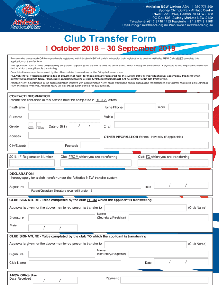 Get the free Online Registration Form - Nepean Seniors Athletics Club ...