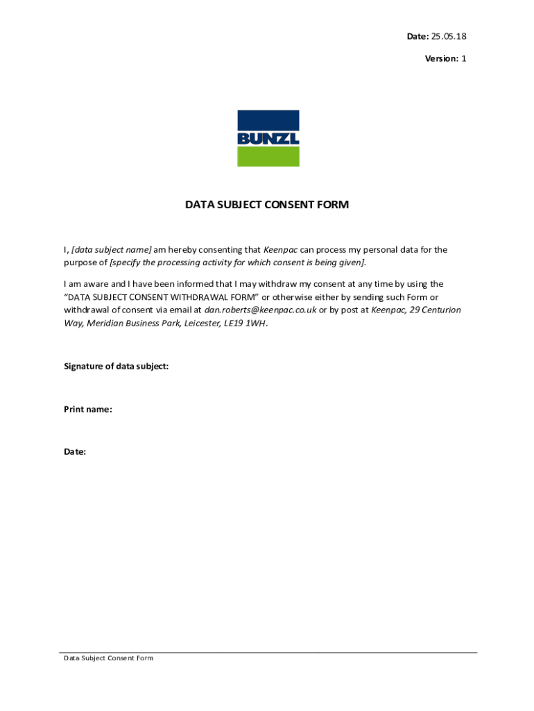 How to fill out bunzl data subject consent