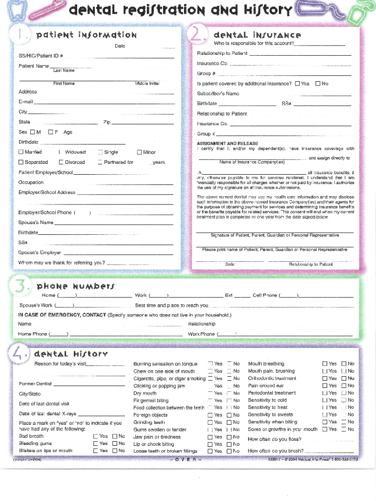 Proceed to the sections that require filling out your medical history, dental history, or any other relevant information.