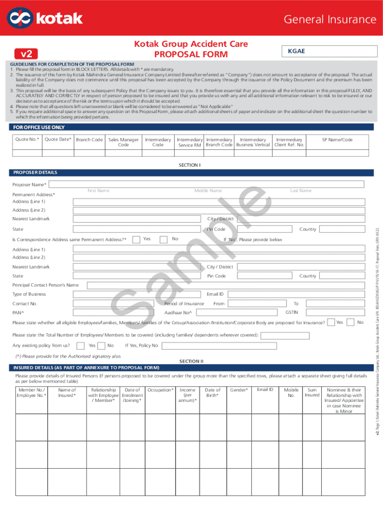 Get the free KGAC- Proposal form-NE - Kotak Mahindra General Insurance