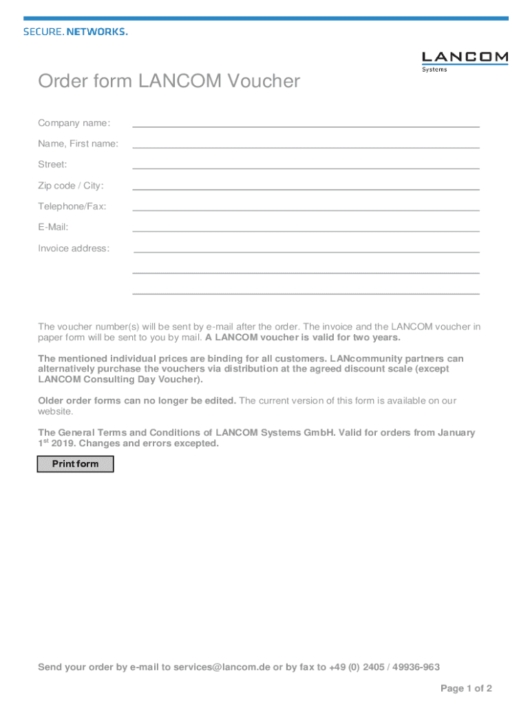 Invoice address:The voucher number(s) will be sent by email after the order. The invoice and