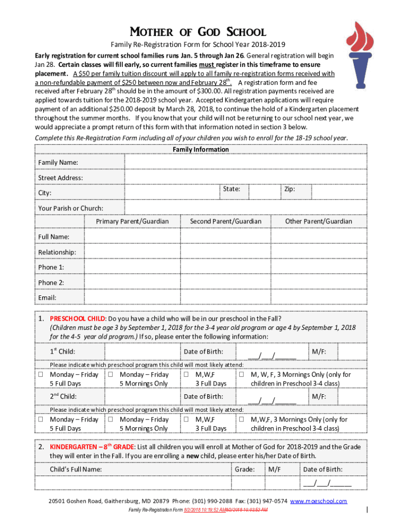 Family Preregistration Form for School Year 20182019