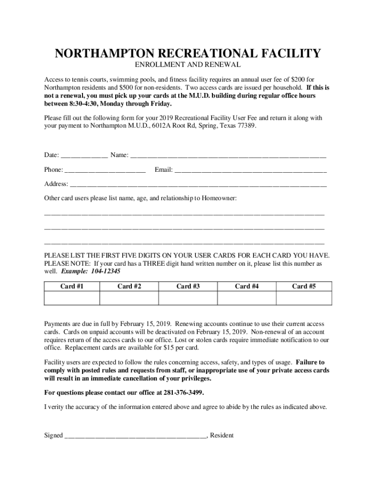 Access to tennis courts, swimming pools, and fitness facility requires an annual user fee of $200 for