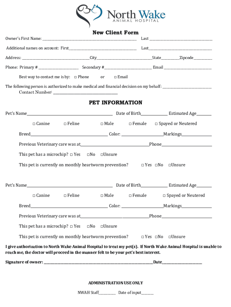 New Client Form Owners First Name: Last Additional names on account: First Last Address: City State Zip code Phone: Primary # Secondary # Email Best way to contact me is by: Phone or Email following