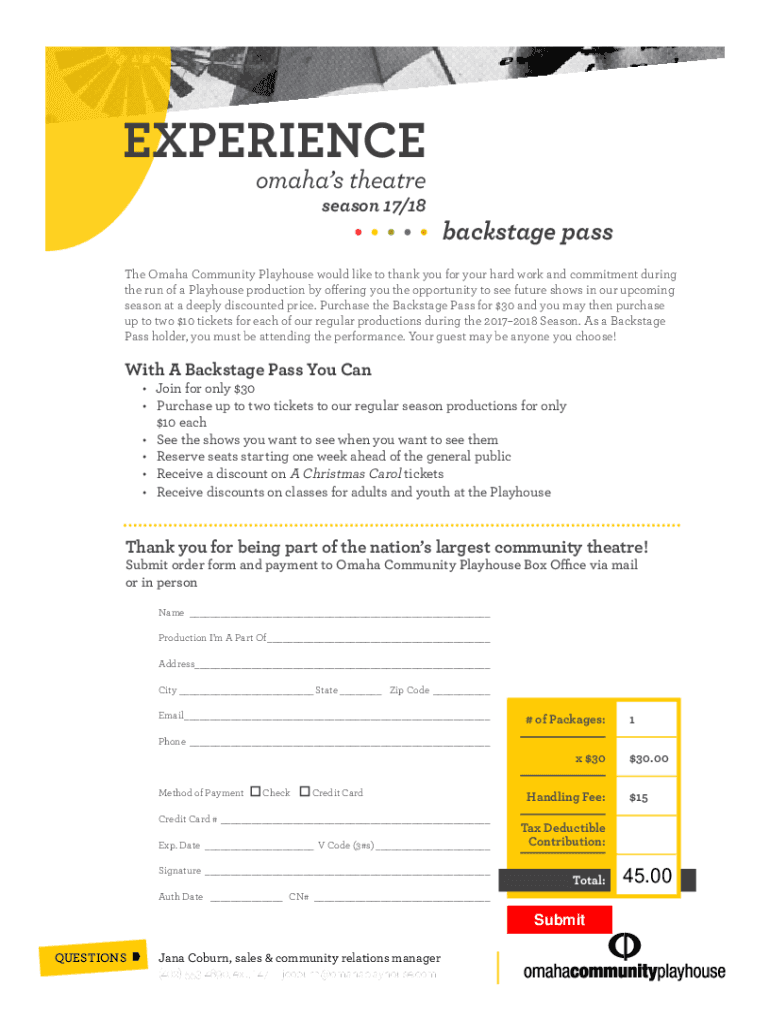 season 17/18backstage passage Omaha Community Playhouse would like to thank you for your hard work and commitment during