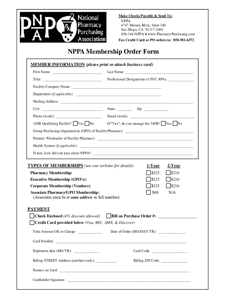 Individuals or organizations wishing to become members of the NPPA are required to file the NPPA membership order formpub.