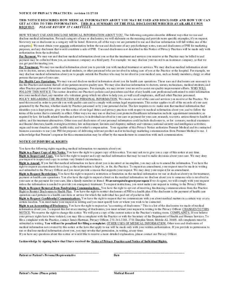 Get the free Notice of Privacy Practice - Premier Medical GroupEye & ENT ...