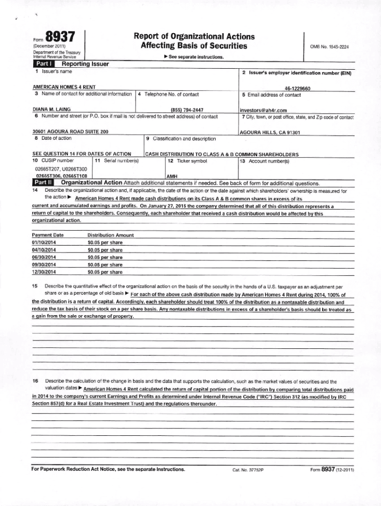 Get the free PDF Report of Organizational Actions Affecting Basis of Securities Form ...