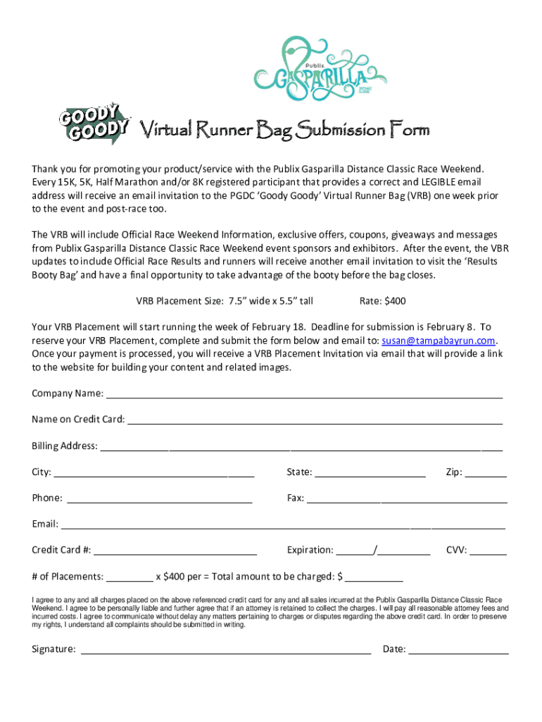 Get the free Virtual Runner Bag Submission Form - Run Gasparilla