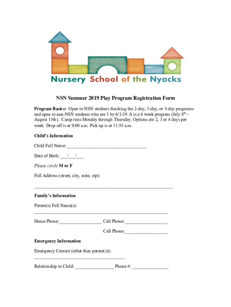 NON Summer 2019 Play Program Registration Form Program Basics: Open to NON students finishing the 2day, 3day, or 5day program sand open to nouns students who are 3 by 6/1/19. It is a 6-week program
