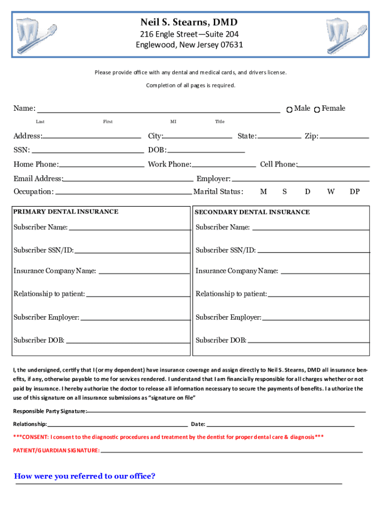 Obtain the necessary paperwork and forms required to fill out Neil S Stearns DMD. These can usually be found online, at the dentist's office, or by contacting their office directly.