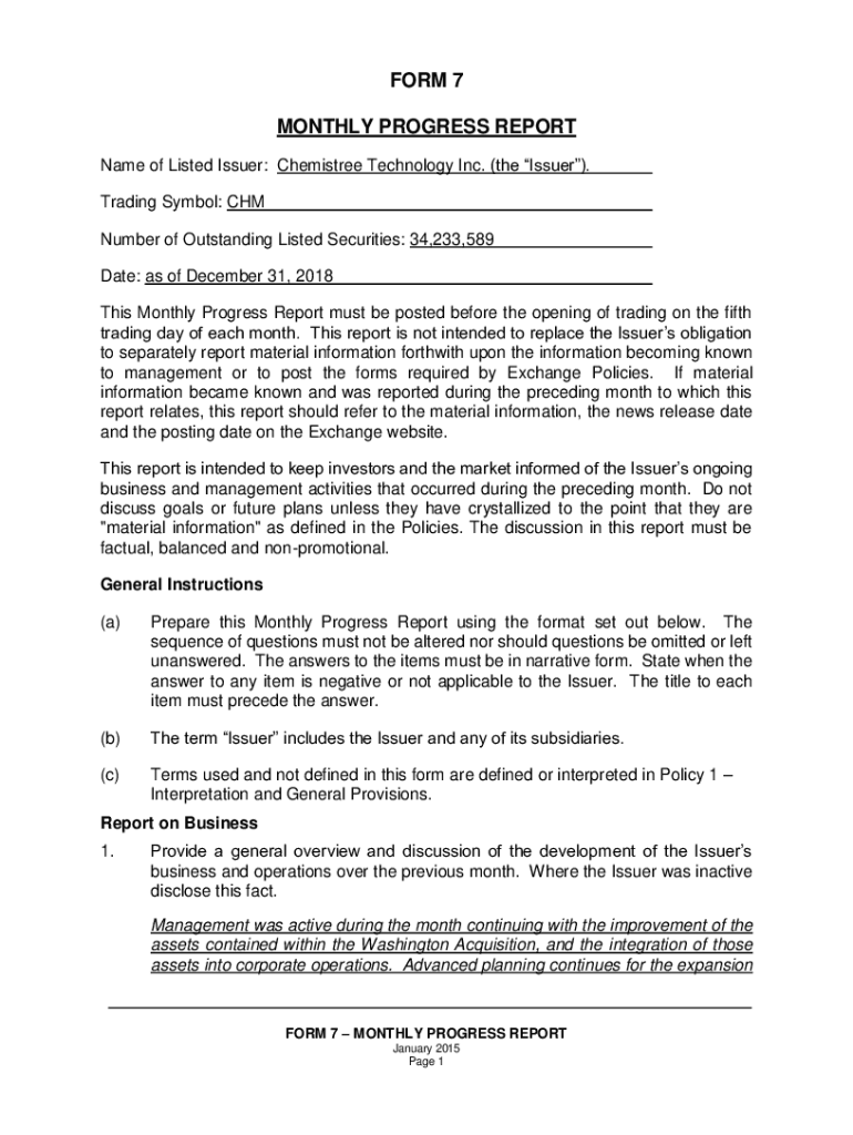 Name of Listed Issuer: Chemistry Technology Inc. (the Issuer).
