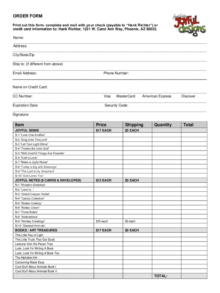 ORDER FORM Print out this form, complete and mail with your check (payable to Hank Richter) or credit card information to: Hank Richter, 1221 W. Carol Ann Way, Phoenix, AZ 85023. Name: Address: City/State/Zip: