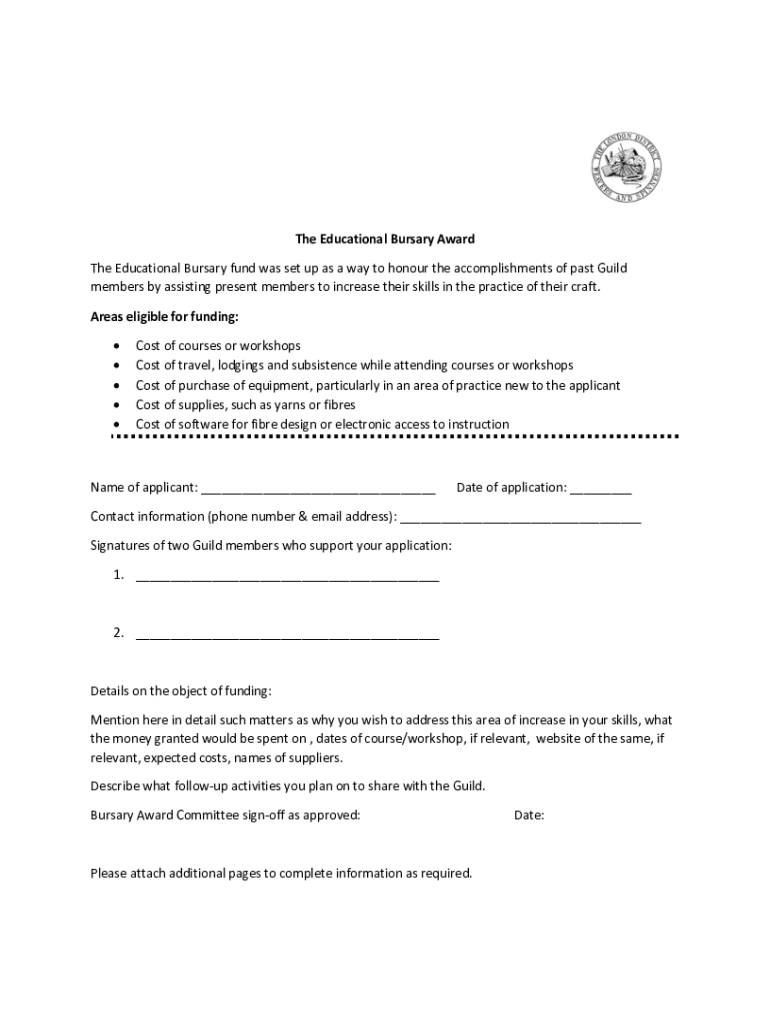 The Educational Bursary Award The Educational Bursary fund was set up as a way to honor the accomplishments of past Guild members by assisting present members to increase their skills in the practice