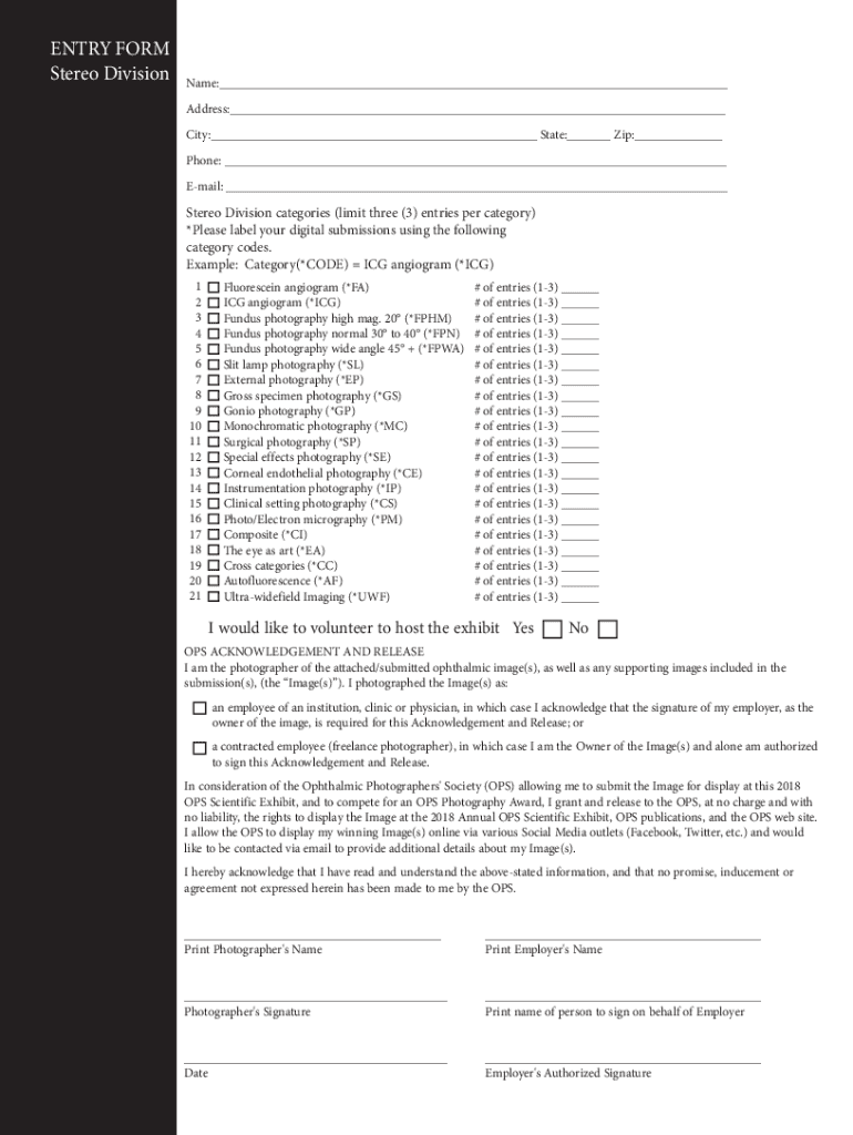 ENTRY FORM Stereo Divisional: Address: City: State: Zip: Phone: Email: Stereo Division categories (limit three (3) entries per category) *Please label your digital submissions using the following