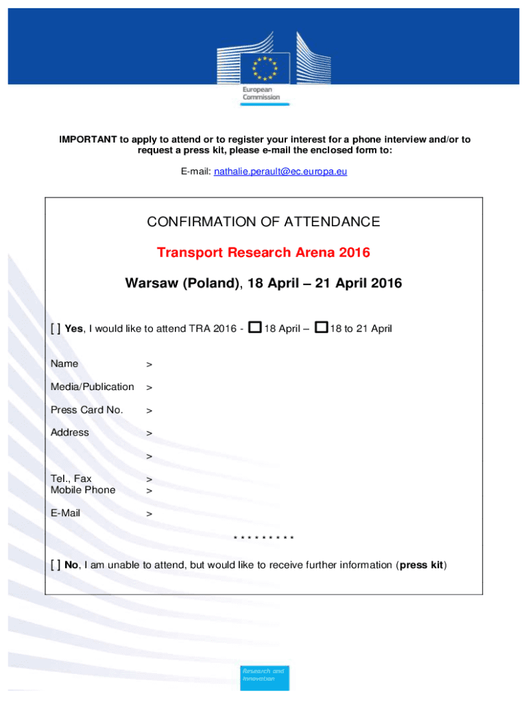 IMPORTANT to apply to attend or to register your interest for a phone interview and/or to request a press kit, please email the enclosed form to: Email: Nathalie. Hérault EC. Europa.confirmation