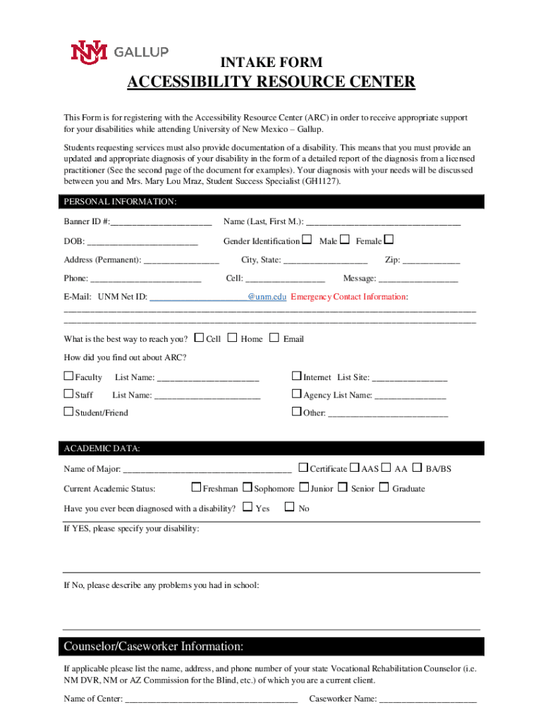 INTAKE FORMACCESSIBILITY RESOURCE CENTER This Form is for registering with the Accessibility Resource Center (ARC) in order to receive appropriate support for your disabilities while attending University