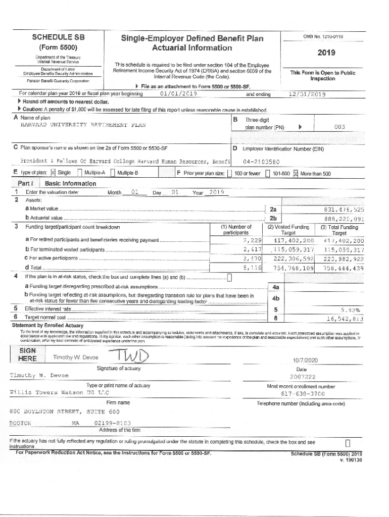 10/7/2020SCHEDULE SB ATTACHMENTS Schedule SB Statement by Enrolled Actuary Plan SponsorPresident & Fellows of Harvard College EIN/PN042103580 / 003Plan Name Harvard University Retirement PlanValuation