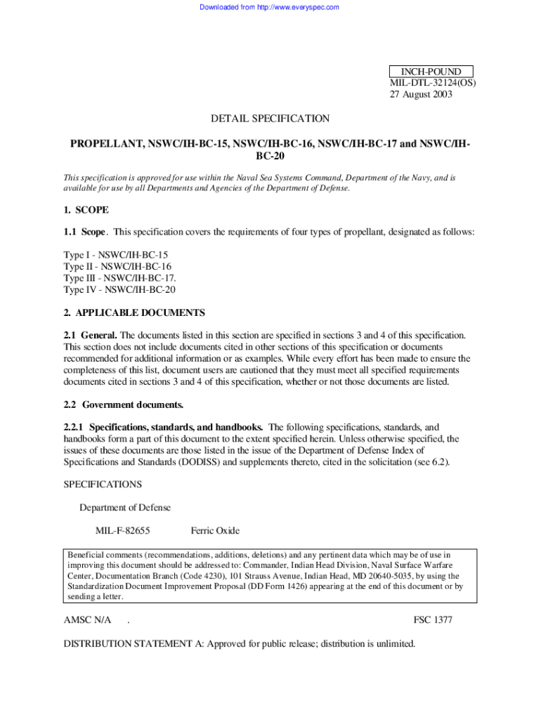 Downloaded from http://www.everyspec.comINCHPOUND MILDTL32124(OS) 27 August 2003DETAIL SPECIFICATION PROPELLANT, NSW/IHBC15, NSW/IHBC16, NSW/IHBC17 and NSW/IHBC20 This specification is approved for
