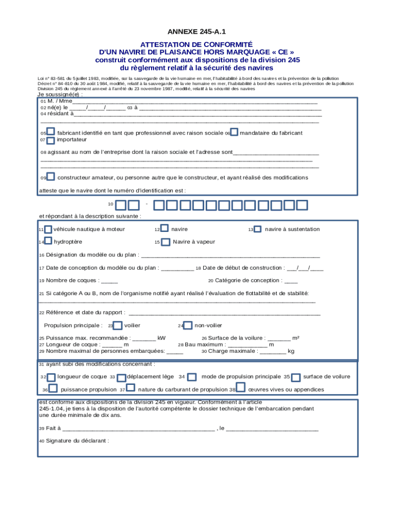 ANNEXED 245A.1 ATTESTATION DE CONFORMITY DUN NATIVE DE ALLIANCE HOURS MARRIAGE CE construct conferment aux dispositions DE la division 245 Du element related la security DES navies Loin 83581 Du 5