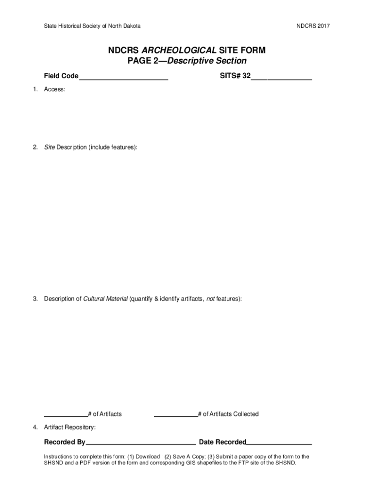 How to fill out ndcrs archeological site form
