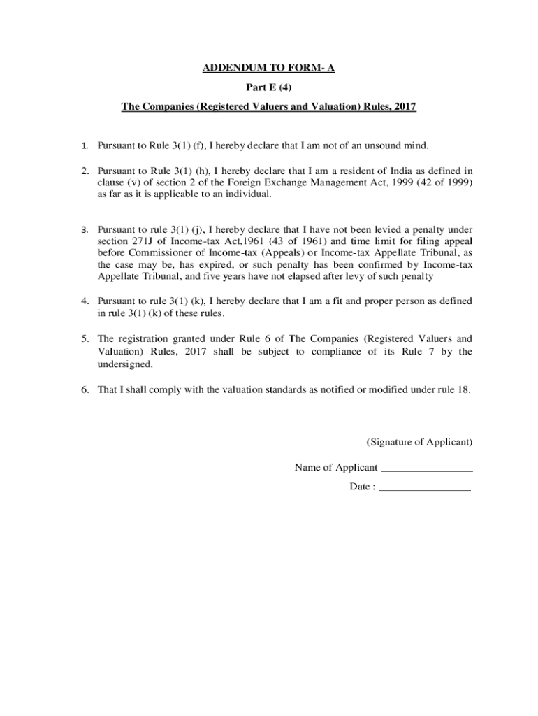 Get the free Addendum to Form- A Part E (4) - ICAI Registered Valuers ...