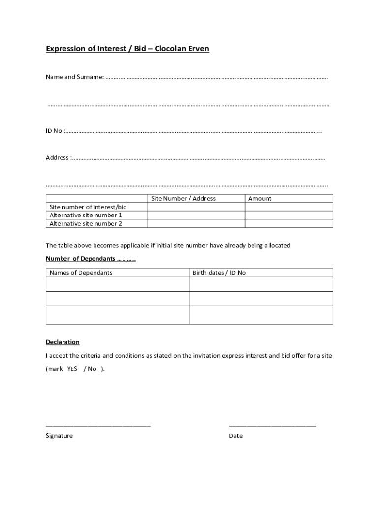 Expression of Interest / Bid Chocolate Even Name and Surname:.ID No :