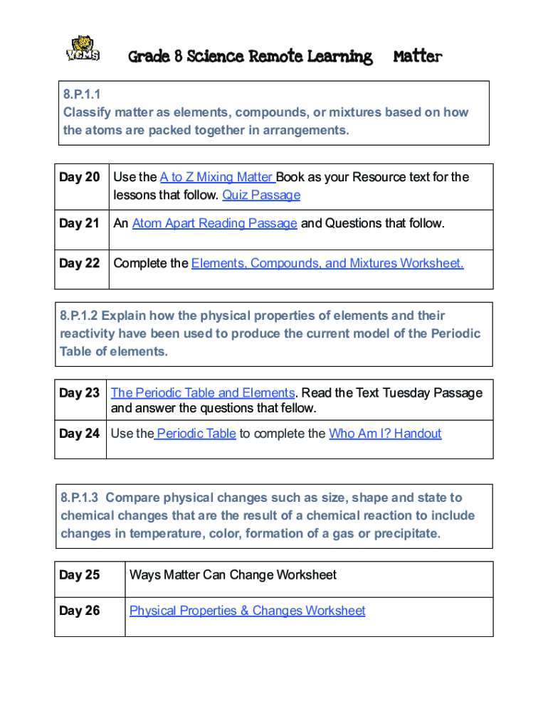Grade 8 Science Remote LearningMatter8. P.1.1