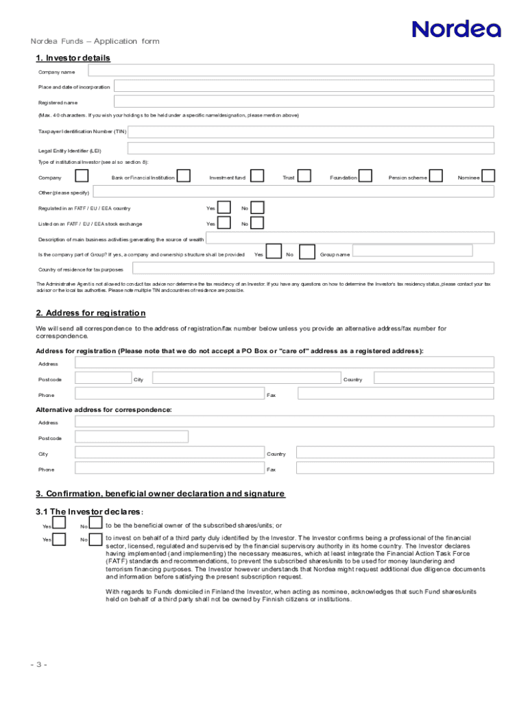 Get the free Nordea Funds Application form for institutional investors