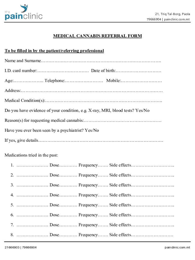 Get the free PDF MEDICAL CANNABIS REFERRAL FORM To be filled in ... - Pain Clinic