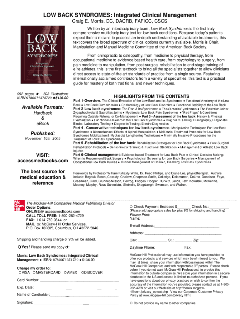 Get the free To Order Dr. Craig Morriss Book: Low Back Syndromes ...