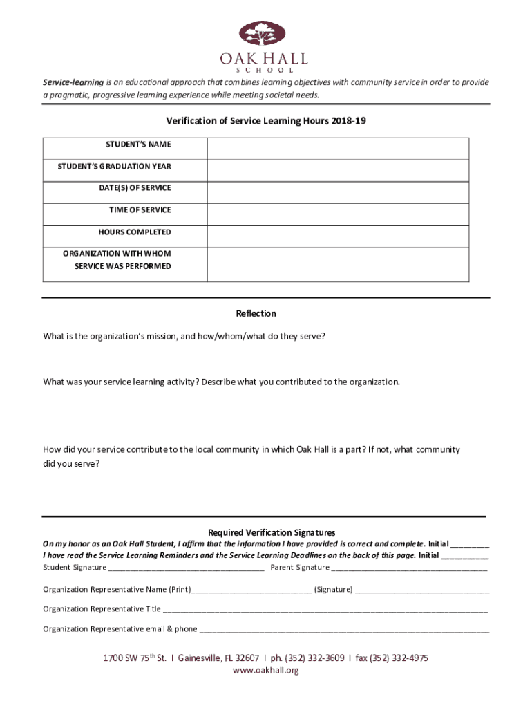 Typically, students who are enrolled in a service-learning course or program are required to complete and file the necessary documentation to reflect their service activities.