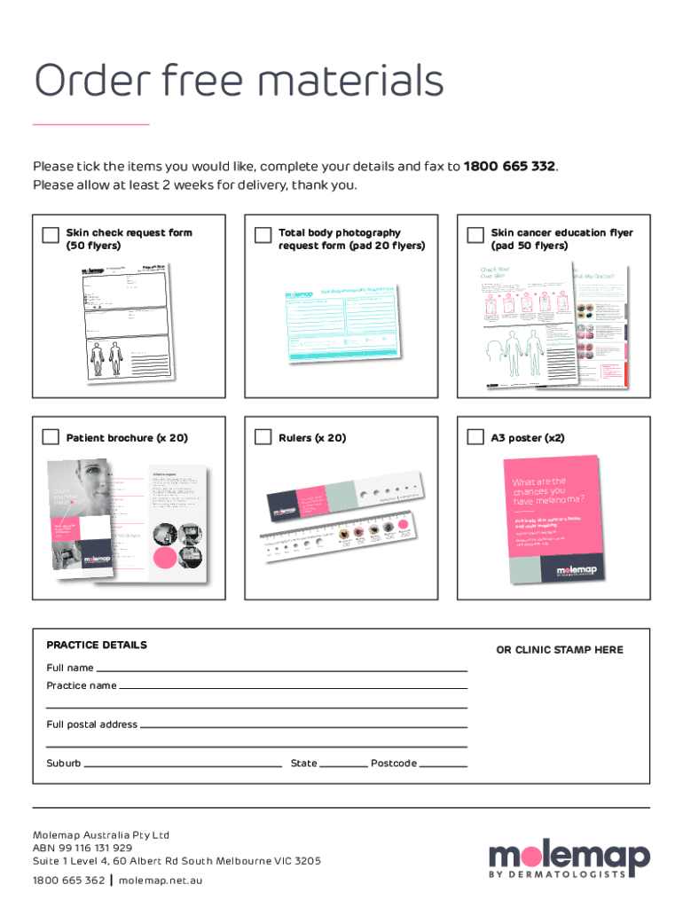 Please allow at least 2 weeks for delivery, thank you. Skin check request form
